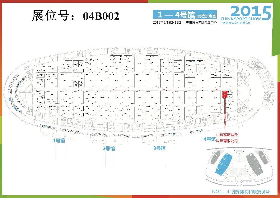 由国家体育总局、中国体育用品业联合会主办,国家体育总局体育器材装备中心、福建省体育局、福州市人民政府共同承办的2015年(第33届)中国国际体育用品博览会,已定于2015年5月8日~11日在福州海峡国际会展中心举办。 山东多宝电竞健身科技有限公司将参与本次博览会,场馆区域为4馆B002号,届时将展出我们新型的跑步机,力量器械,运动单车等产品,欢迎各位新老客户参观,多宝电竞健身全体员工将竭诚为您服务。